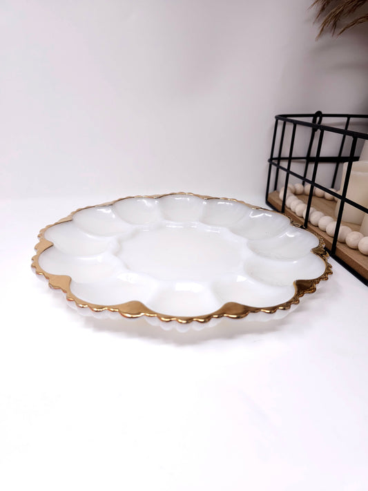 1950’s Anchor Hocking Fire King Deviled Egg Platter W/ 22K Gold Trim