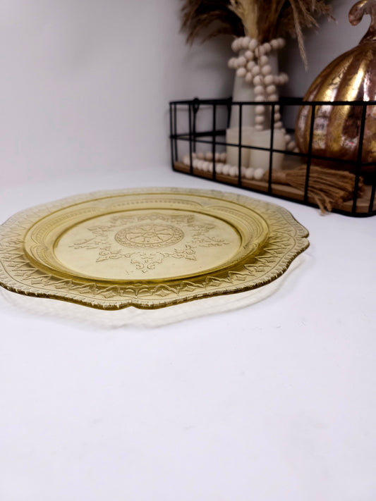 1930s Madrid Yellow Federal Glass Dinner Plates