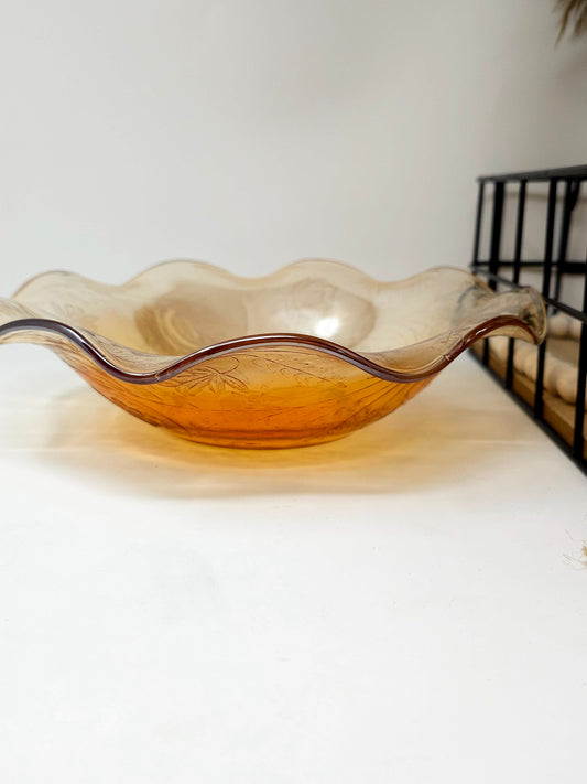Anniversary Marigold Carnival Glass Centerpiece Bowl around 9" x 2.5"