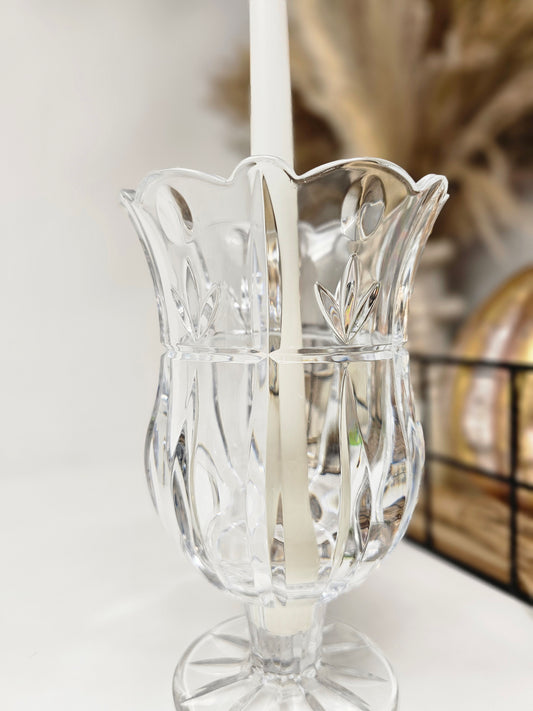 Block 24% Full Lead Crystal Tulip Garden Design Hurricane Vase or Votive Holder
